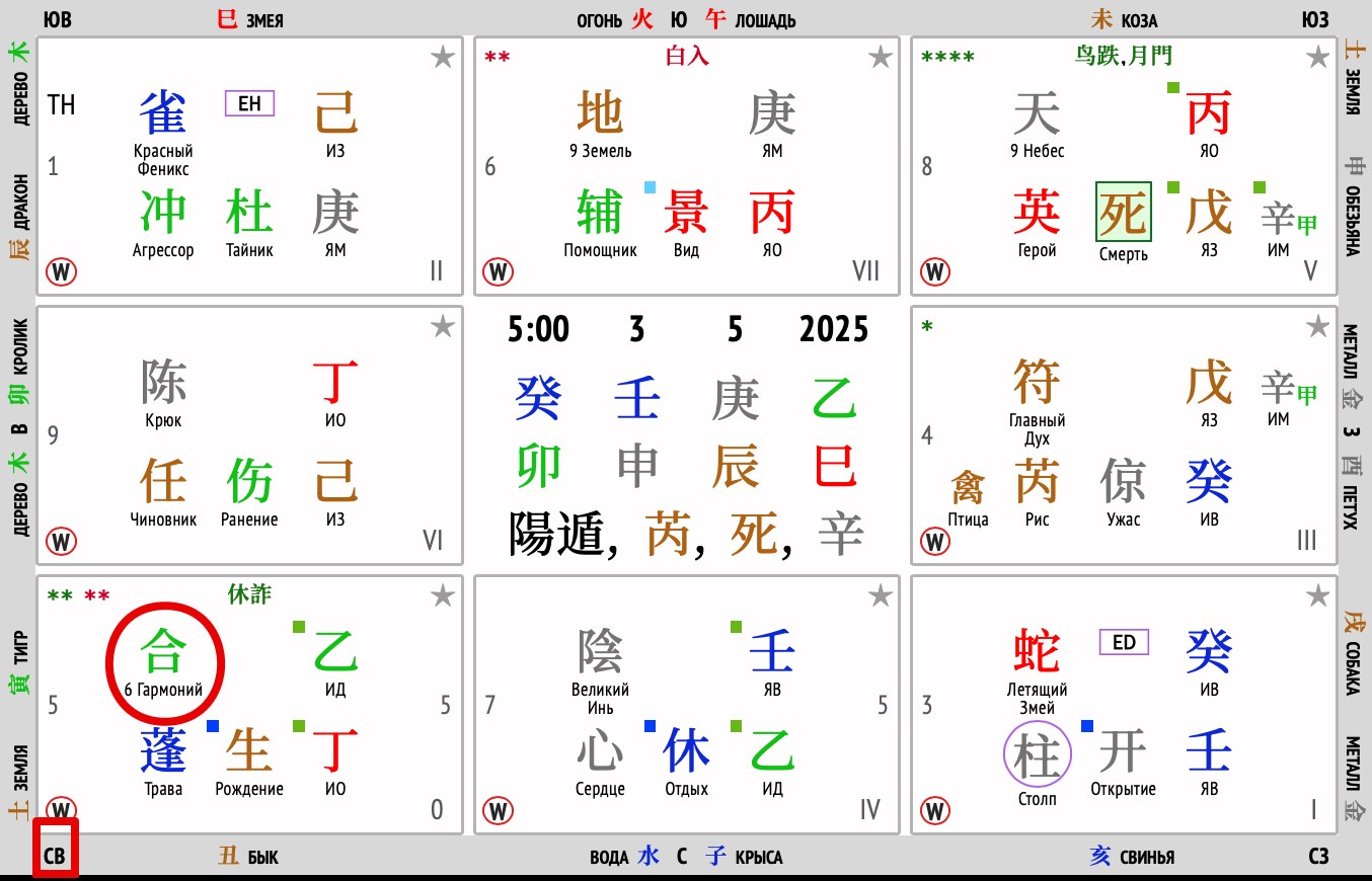 текущую двухчасовку. Внизу вы увидите карту Ци Мэнь.