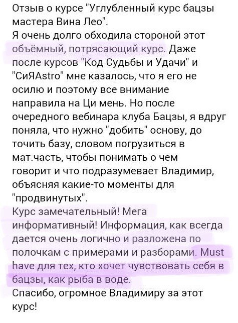 ✓ По мнению многих моих учеников, интенсивно практикующих Бацзы, – это «самый точный и практичный курс, который они используют в повседневной практике». А остальное во многом так и остается теорией, пылящейся на книжных полках.