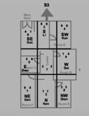 8 прямоугольников расположенных по периметру фигуры называются по триграммам Позднего Неба, расположенных в соответствующих секторах. Например Южный прямоугольник называется Ли, Юго-Западный — Кунь, Западный — Туи, Северо-Западный Тянь, Северный — Кань, Северо-восточный — Гэнь, Восточный — Жэнь и Юго-восточный – Шунь. Эта разметка прежде всего используется для анализа интерьера. Наименование «прямоугольник» или «квадрат» мы используем только для начинающих, на самом деле это контейнеры Ци. Когда у нас один тип Ци заполняет всю комнату, подобно тому, как вода заполняет сосуд. Естественно, что тогда у нас Дворцы могут быть неравной площади, какие-то могут вообще отсутствовать в силу планировки помещения. Изменяя планировку помещения, мы определенный тип энергии привлекаем в дом, другой тип энергии мы выталкиваем из дома.
