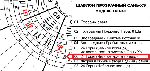 Человеческое кольцо – это самое последнее из добавленных колец компаса Лопань, оно сейчас изображается посредине. Самое внутреннее кольцо сейчас идет Земное, потом Человеческое и потом Небесное. Человеческое кольцо используется для измерения объятий. Если у Вас есть горная гряда справа от Вашего дома и города, горная гряда слева от дома и эта горная гряда формируется из отдельных гор, для того чтобы оценить качество каждой гряды, на что именно она влияет в этом объятии — не горы спереди дома и не горы сзади домы, а именно гор которые сбоку — то что называется Зеленый Дракон, Белый Тигр. Левое объятье, если мы смотрим изнутри дома наружу, называется Зеленый Дракон, а правое объятье – Белый Тигр. Для того, чтобы оценить их качество используется Человеческое кольцо компаса Лопань. Но применяется оно в современном фэншуй настолько редко, что многие мастера уже не помещают его на свой Лопань.