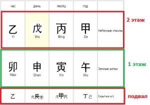 Скрытые Небесные Стволы. При построении карты Бацзы, на сайте www.ba-zi.ru, при включенной опции отображения «скрытые небесные стволы» (в вертикальном меню, слева), у Вас отобразятся один из двух наборов скрытых НС. Можно сказать, что вверху у Вас будут Небесные Стволы -1ый этаж, ниже Земные Ветви -2й этаж, и дальше скрытые Небесные Стволы – подвал.