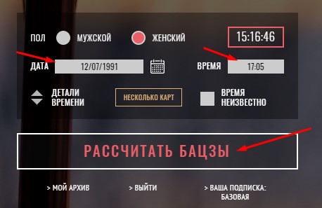 3. Внесите дату своего рождения и нажмите кнопку рассчитать