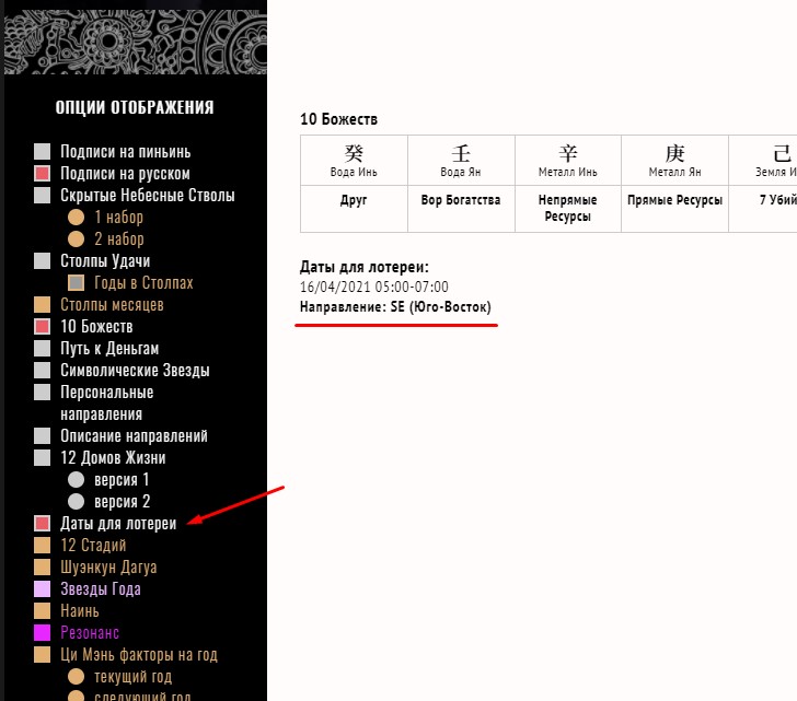 Для того, чтобы увидеть Даты для лотереи в вашей карте рождения (Ба-цзы),