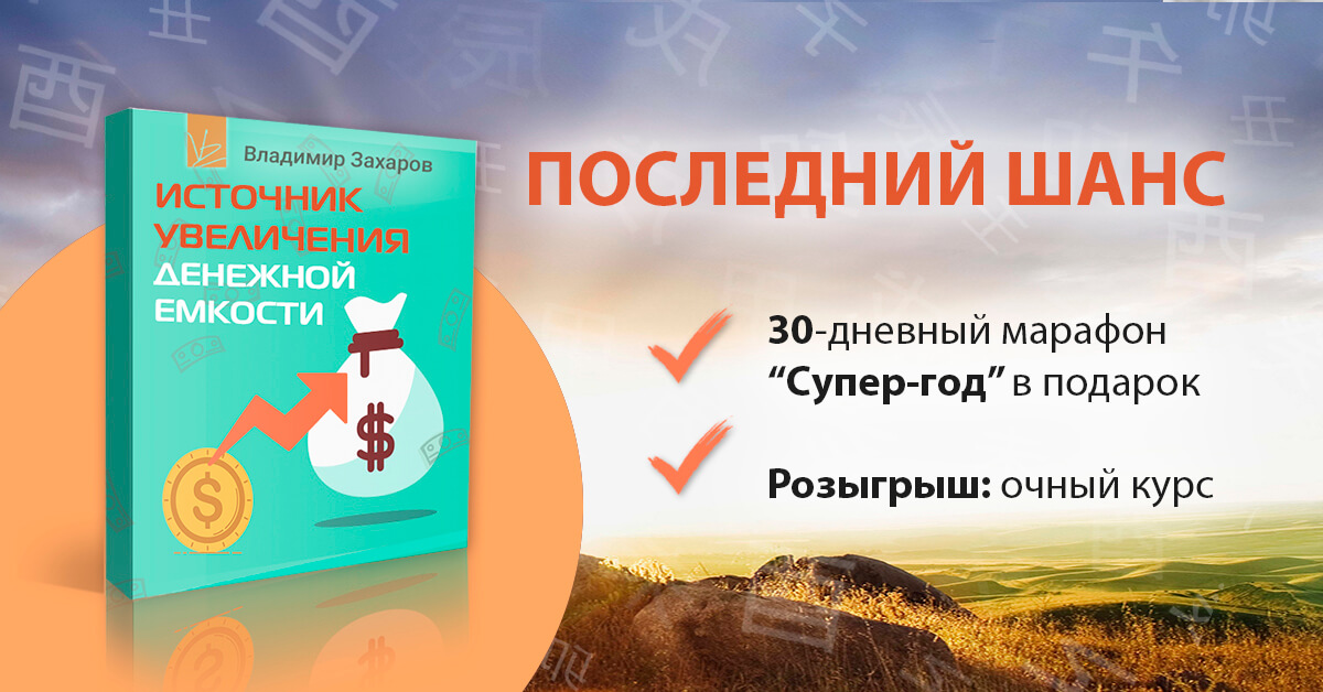 Всего на несколько дней доступен к заказу офигенный семинар БЕЗ ВОДЫ “Источник увеличения денежной емкости”. Регистрируясь прямо сейчас, Вы получаете онлайн-марафон стоимостью $300 БЕСПЛАТНО и участвуете в РОЗЫГРЫШЕ очного курса.