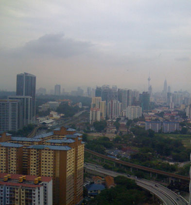 Курс проходит в конференц-зал 5-ти-звездочной гостиницы на 28-м этаже. Вид на Куала-Лумпур из окна класса.